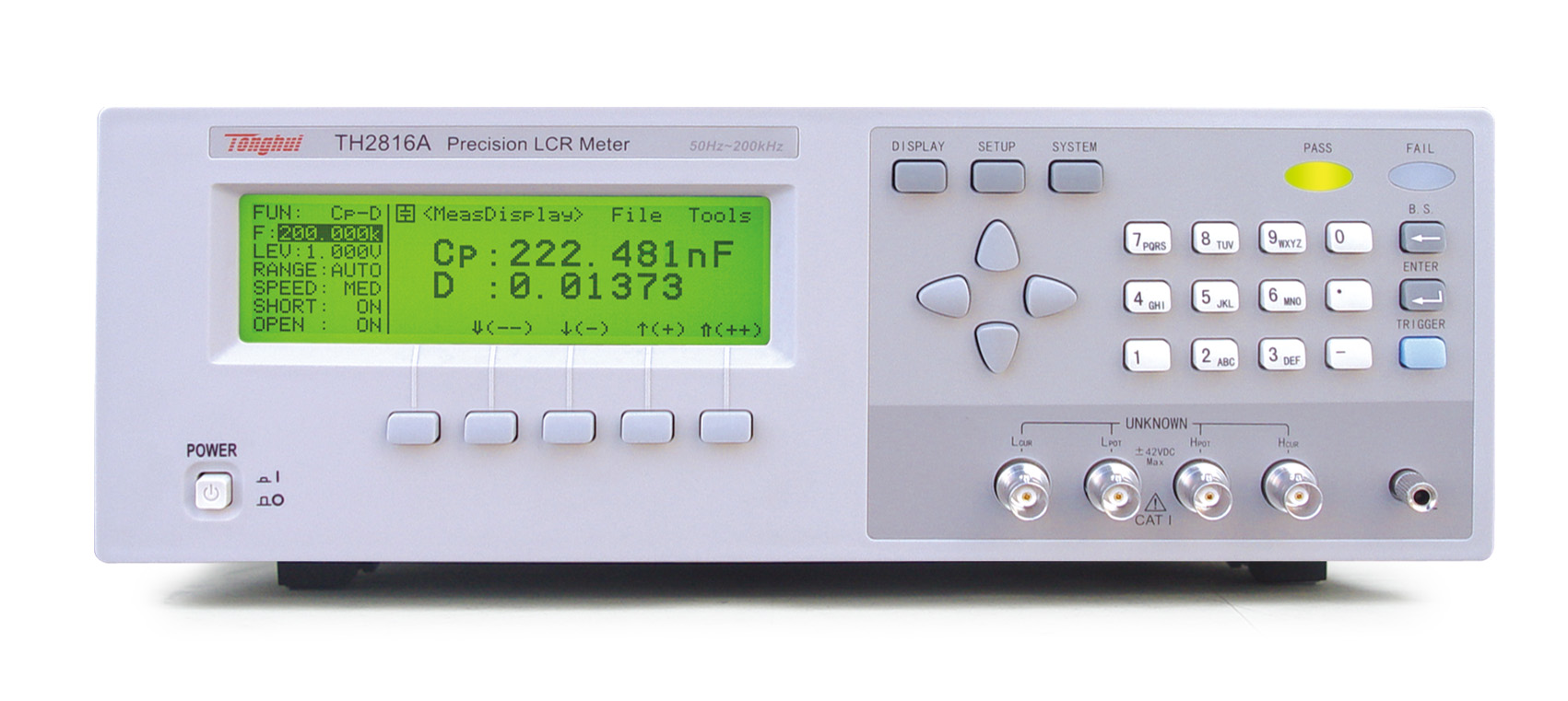 A digital LCR meter is employed to assess the impedance present in a Device Under Test (DUT).